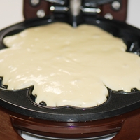 生地は膨らむのでそれを計算にいれて注ぎ入れてください、入れすぎると生地がはみでしまいます。