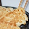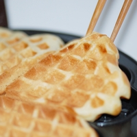 ■フタをしめて、2、3分(ワッフルメーカーによって時間は違います)で焼きあがります、盛りつけるお皿を準備して、焼きあがったワッフルをお箸で丁寧に挟んで落とさないようにお皿に移す。
