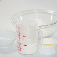 ■ボール・計量スケールを準備する、レシピを確認しながら材料をボールや計量カップにすぐに注げるように準備しておく。